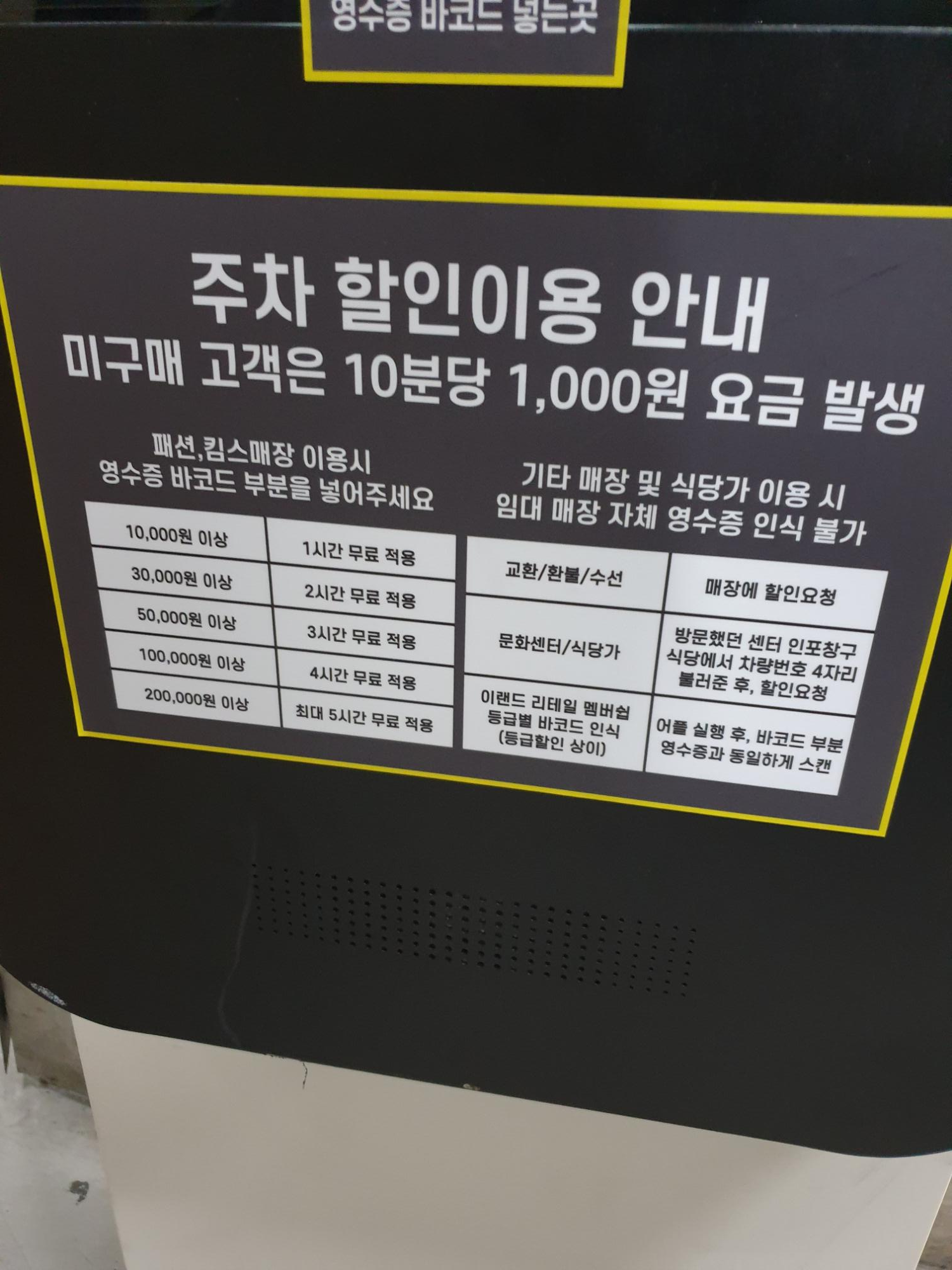 아시아문 뉴코아아울렛 인천점 주차정보 본문