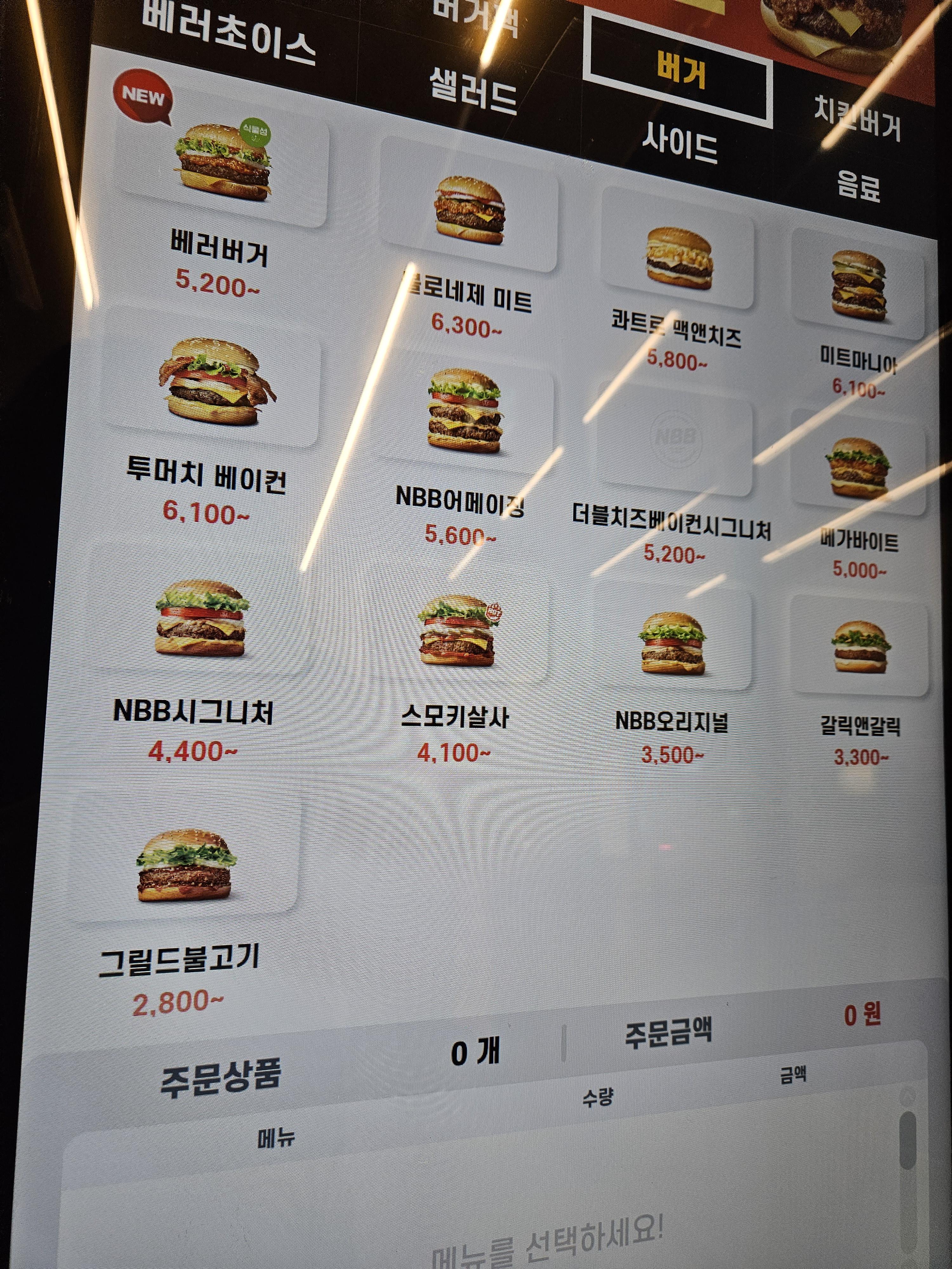 NBB 시그니처 버거는 가격 4400 원입니다